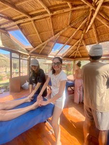 Her approach is truly holistic, integrating knowledge of anatomy, Ayurvedic massage, craniosacral therapy, marma points, traditional Thai massage, Reiki, Breema, and Vedic astrology. She is also a certified Human Design reader and a practitioner and initiate in the Bhakti Yoga tradition under the guidance of Srila Bhakti Kavi Atulananda Maharaj and Chaitanya Nitai Das.